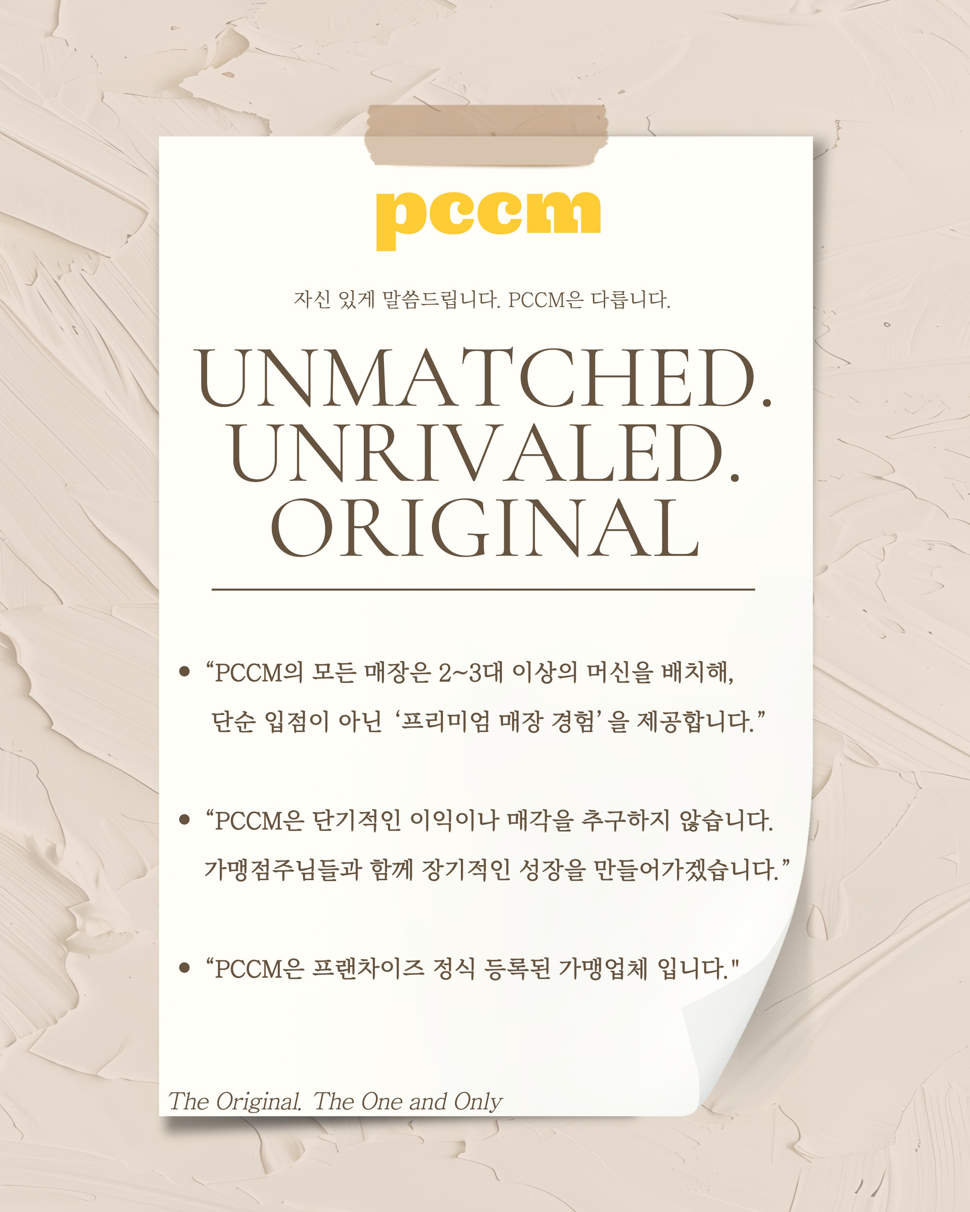 모조품에 유의하세요! PCCM은 국내 기술력으로 개발된 유일한 국산 제품입니다. 국내 자체 기술력으로 만들어져 편리한 유지/관리가 가능합니다.